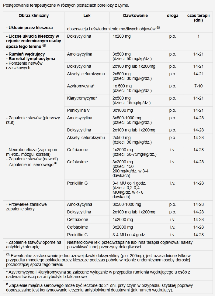 Fig. Wytyczne leczenia zakażenia B. burgdorferi. Źródło: PTMR, zgodne z aktualnymi wytycznymi PTEiLChZ